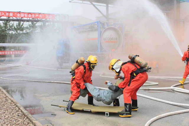 6月21日上午,9時(shí)40分,江山股份氯氣站一輛裝有20噸液氯的槽罐車在接卸液氯作業(yè)時(shí),管道“發(fā)生”氯氣泄漏,氯氣向周邊擴(kuò)散,影響了附近企業(yè)和居民的人身安全……這是南通市氯氣泄漏事故應(yīng)急綜合演練中的一幕。 由市政府主辦、江山股份承辦的南通市氯氣泄漏事故應(yīng)急綜合演練是2012年南通市安全生產(chǎn)月的“重頭戲”, 此次應(yīng)急演練重在提高政府、職能部門、企業(yè)應(yīng)對(duì)危險(xiǎn)化學(xué)品事故的應(yīng)急處置能力,最大限度減少因安全生產(chǎn)事故給企業(yè)和人民群眾造成的財(cái)產(chǎn)損失和人員傷亡。 由于氯氣是具有刺激性氣味的有毒氣體,可以溶解于水,因此應(yīng)急處理主要是通過噴灑形成水霧的方法來降低氯氣濃度,控制擴(kuò)散范圍?,F(xiàn)場(chǎng)用紅色煙霧代替黃綠色氯氣。演練中,市安監(jiān)、公安、消防、環(huán)保、質(zhì)監(jiān)、衛(wèi)生、氣象等部門積極聯(lián)動(dòng),各司其職,氣象部門提供風(fēng)力、溫度、濕度等實(shí)時(shí)數(shù)據(jù),環(huán)保部門負(fù)責(zé)空氣中氯氣含量檢測(cè),公安負(fù)責(zé)交通管制和疏散救援……僅用了不到40分鐘即圓滿完成了泄漏源堵漏和周邊企業(yè)及居民的疏散工作,充分展示并檢驗(yàn)了市政府、職能部門及企業(yè)應(yīng)對(duì)危險(xiǎn)化學(xué)品事故的應(yīng)急處置能力。 副市長徐輝擔(dān)任現(xiàn)場(chǎng)總指揮,并對(duì)演練做了綜合點(diǎn)評(píng)。江山股份董事長李大軍觀摩現(xiàn)場(chǎng)演練,總經(jīng)理薛健任現(xiàn)場(chǎng)副指揮。